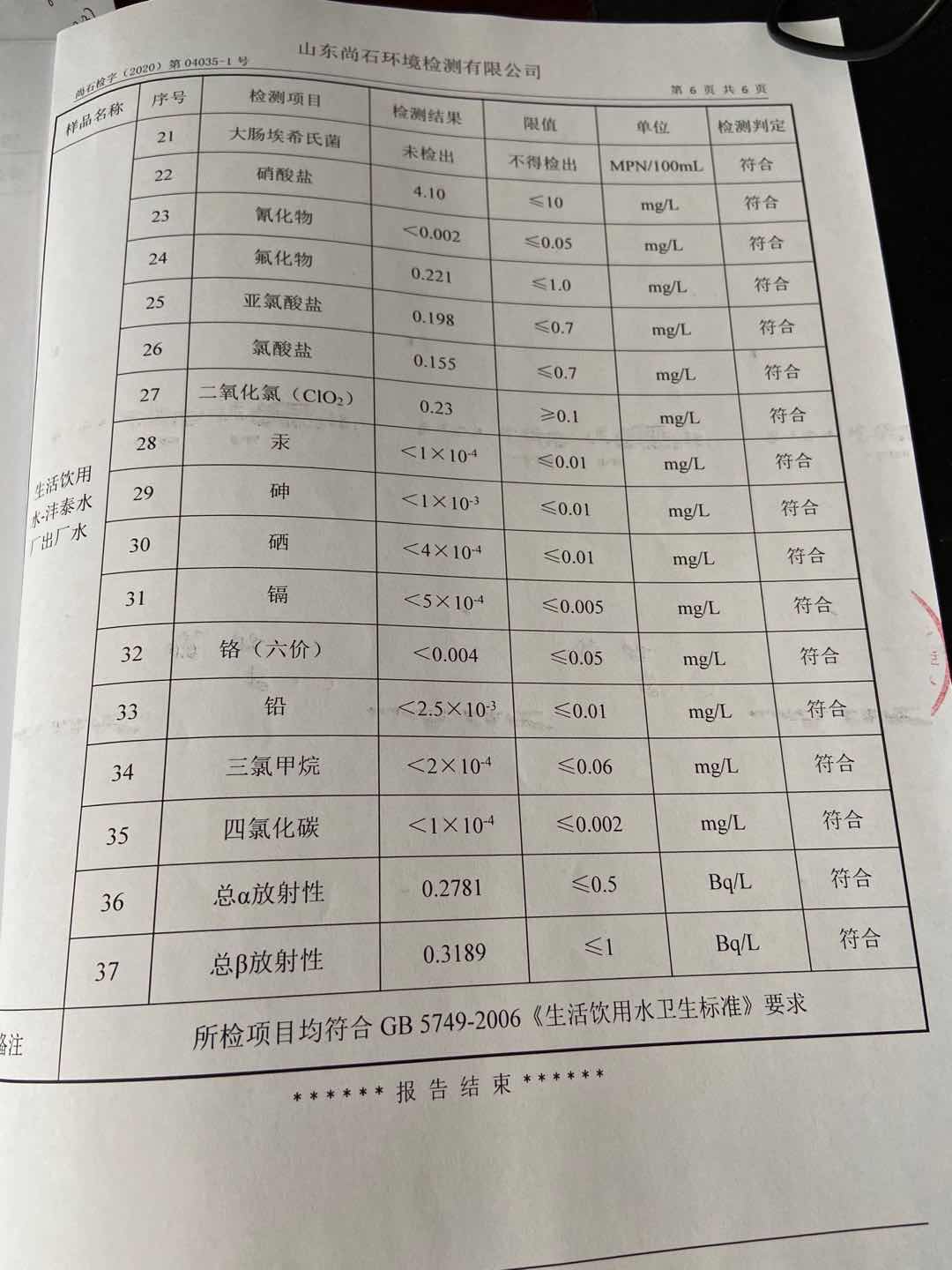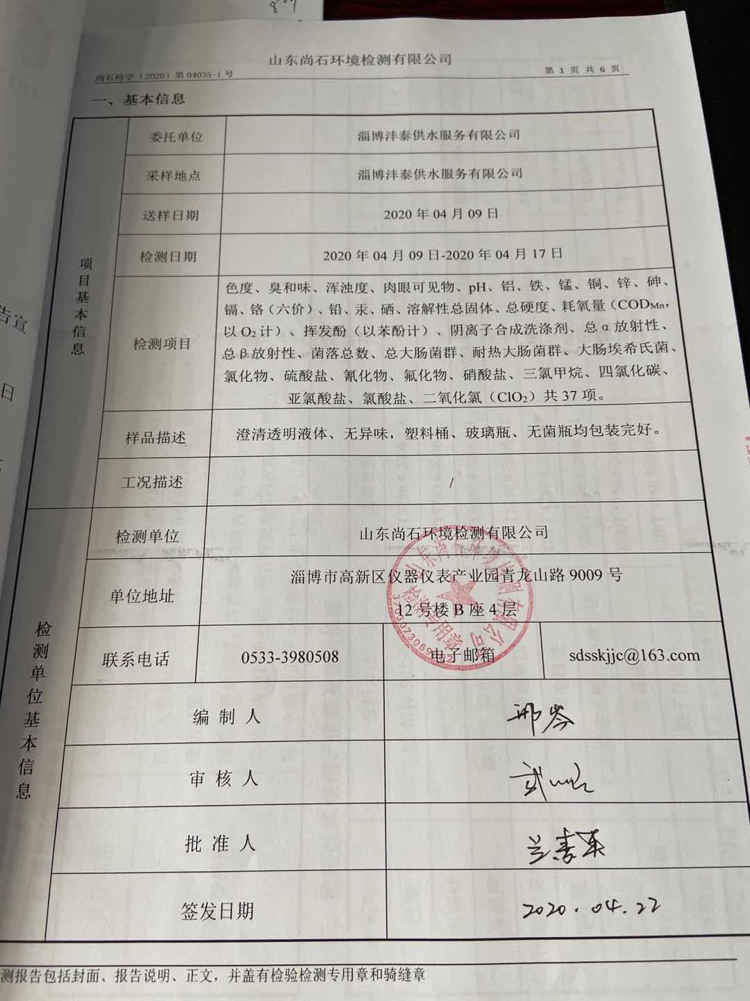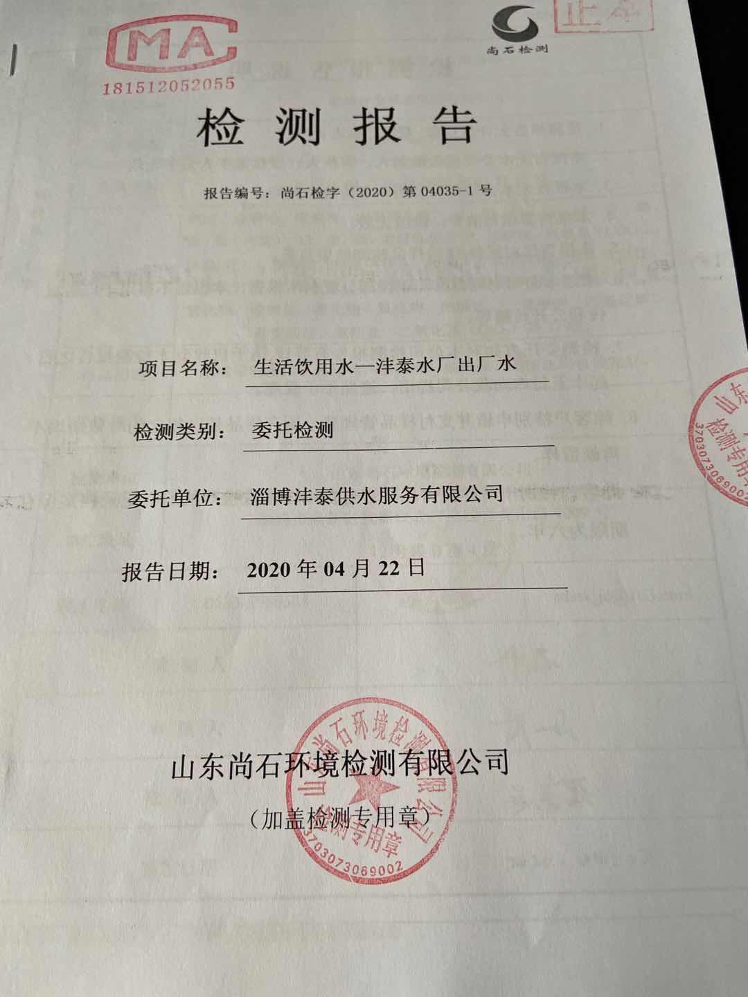 淄博灃泰供水服務(wù)有限公司出廠水月檢報(bào)表