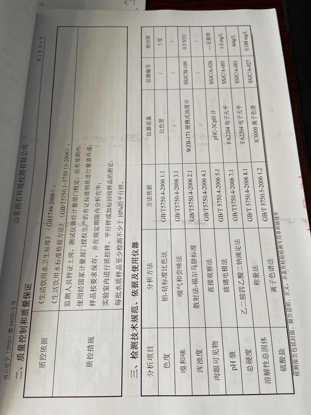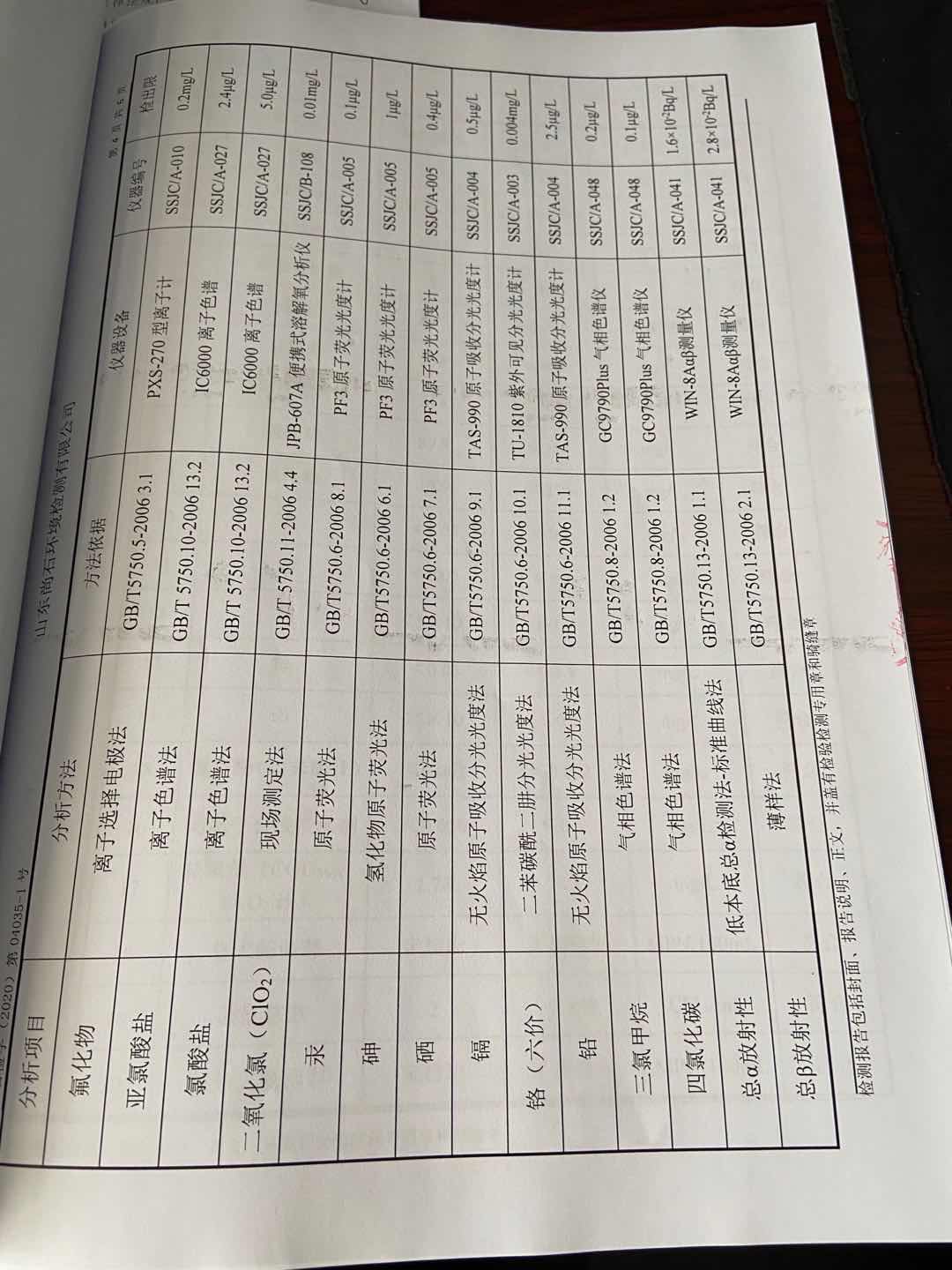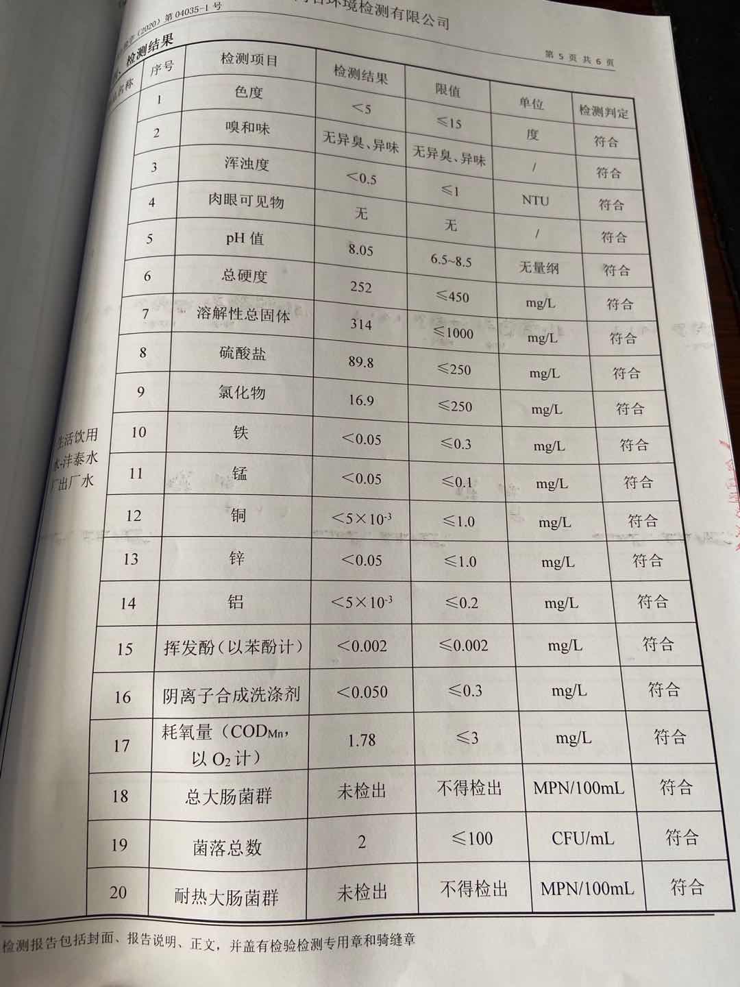 淄博灃泰供水服務(wù)有限公司出廠水月檢報(bào)表